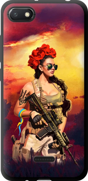 Чохол tpu чорний патріотичний на телефон Xiaomi Redmi 6A Українка зі зброєю "5316b-1531-58250"
