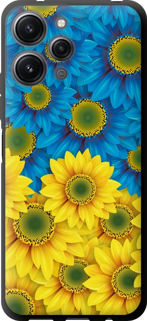 Чохол tpu чорний патріотичний на телефон Xiaomi Redmi 12 Жовто-блакитні квіти "1048b-3114-58250"