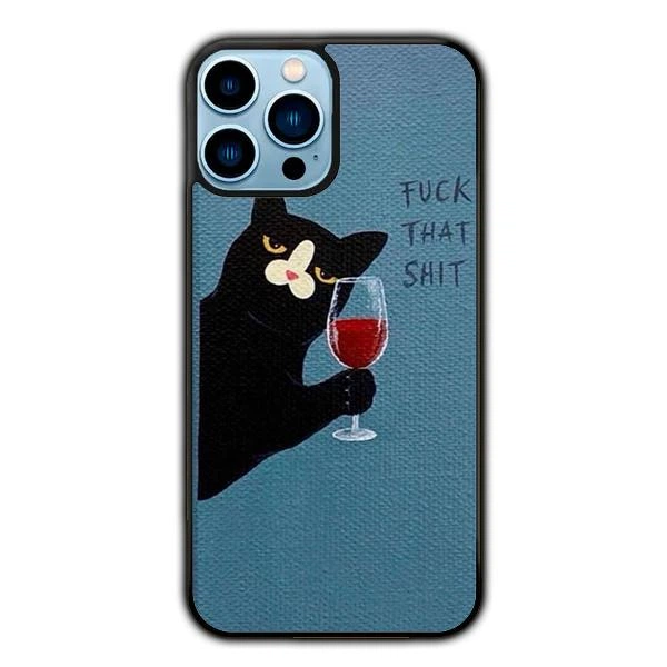 Чохол для Apple iPhone 14 Pro Котик та вино Силіконовий Чорний