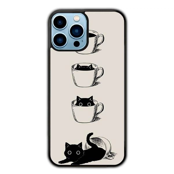 Чохол для Apple iPhone 14 Pro Котик та чашка Силіконовий Чорний