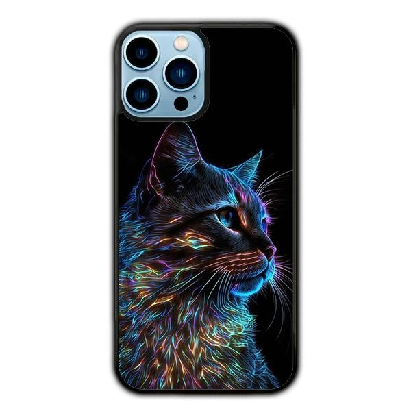 Чохол для Apple iPhone 15 Pro Max Кіт неон Силіконовий Чорний