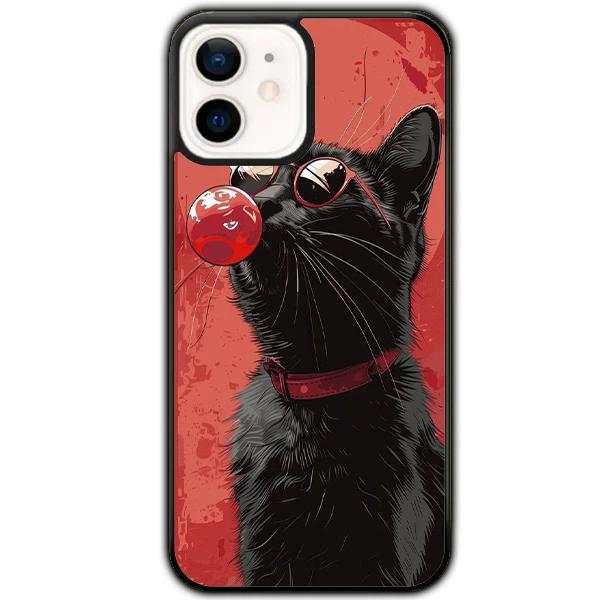 Чохол для Apple iPhone 12 Mini Чорний кіт і жуйка Силіконовий Чорний