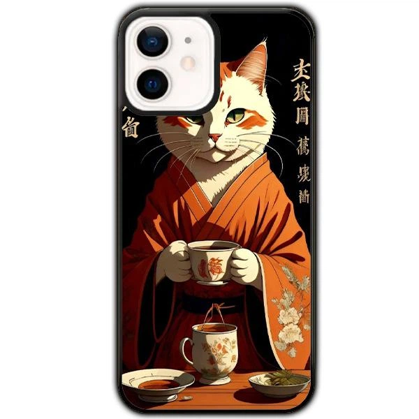 Чохол для Apple iPhone 12 Кіт самурай Силіконовий Чорний