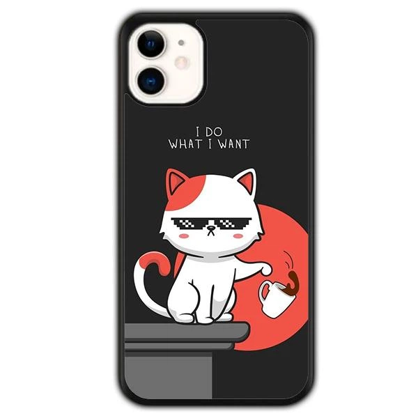 Чохол для Apple iPhone 11 Білий котик Силіконовий Чорний
