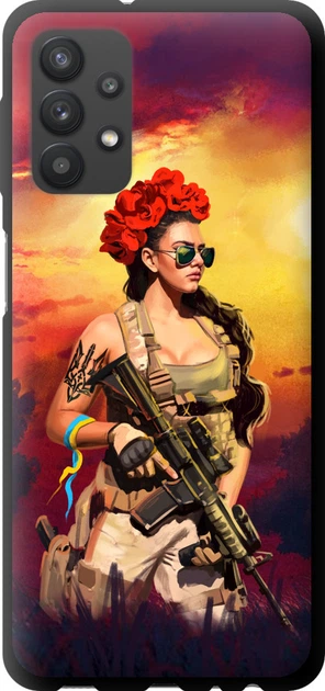 Чохол tpu чорний патріотичний на телефон Samsung Galaxy A32 A325F Українка зі зброєю "5316b-2204-58250"
