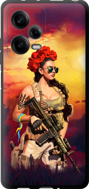 Чохол tpu чорний патріотичний на телефон Xiaomi Redmi Note 12 Pro 5G Українка зі зброєю "5316b-2932-58250"