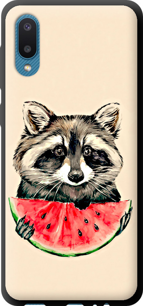 Чохол tpu чорний на телефон Samsung Galaxy A02 A022G Єнотик з кавуном "4605b-2260-58250"