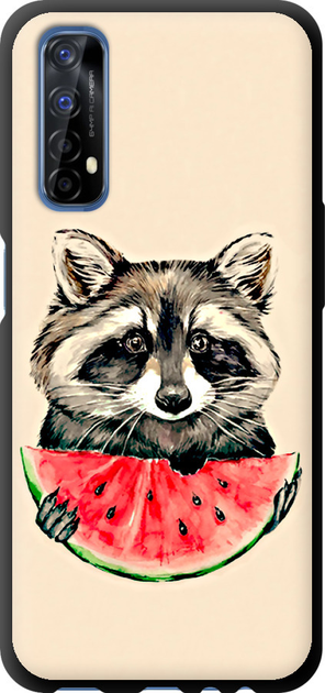 Чохол tpu чорний на телефон Realme 7 Єнотик з кавуном "4605b-2081-58250"