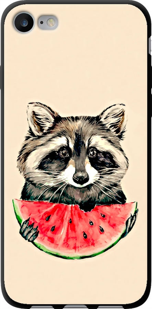 Чохол tpu чорний на телефон iPhone SE 2020 Єнотик з кавуном "4605b-2013-58250"