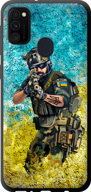 Чохол tpu чорний патріотичний на телефон Samsung Galaxy M21 M215F Воїн ЗСУ "5311b-2016-58250"