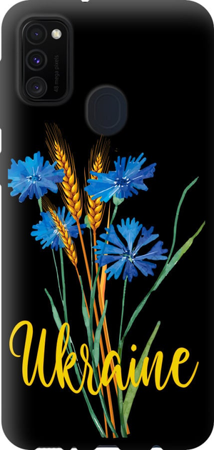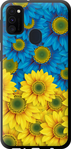 Чохол tpu чорний патріотичний на телефон Samsung Galaxy M21 M215F Жовто-блакитні квіти "1048b-2016-58250"