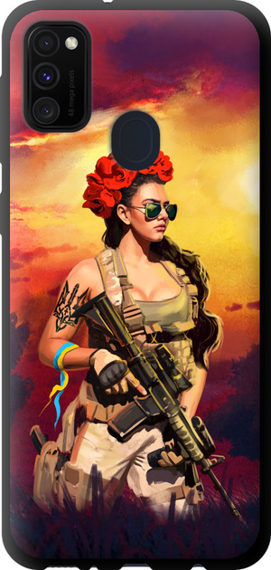 Чохол tpu чорний патріотичний на телефон Samsung Galaxy M21 M215F Українка зі зброєю "5316b-2016-58250"