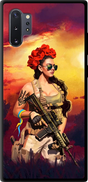 Чохол tpu чорний патріотичний на телефон Samsung Galaxy Note 10 Plus Українка зі зброєю "5316b-1756-58250"