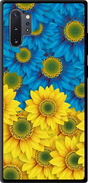 Чохол tpu чорний патріотичний на телефон Samsung Galaxy Note 10 Plus Жовто-блакитні квіти "1048b-1756-58250"