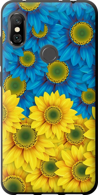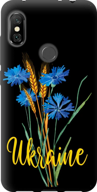 Чохол tpu чорний патріотичний на телефон Xiaomi Redmi Note 6 Pro Жовто-блакитні квіти "1048b-1551-58250"