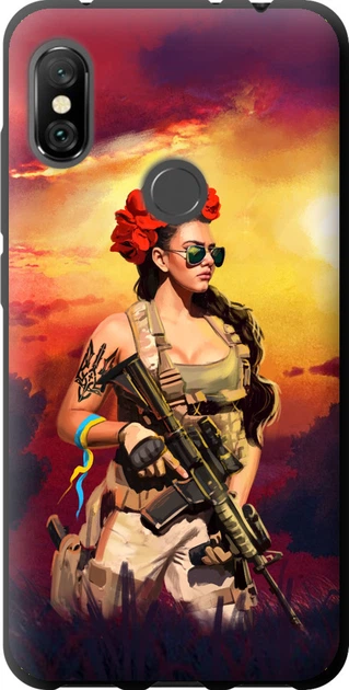 Чохол tpu чорний патріотичний на телефон Xiaomi Redmi Note 6 Pro Українка зі зброєю "5316b-1551-58250"