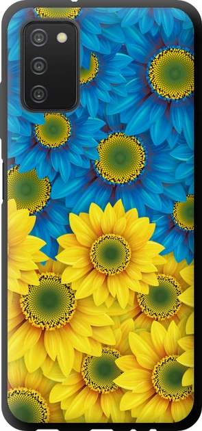 Чохол tpu чорний патріотичний на телефон Samsung Galaxy A03s A037F Жовто-блакитні квіти "1048b-2381-58250"