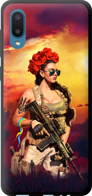 Чохол tpu чорний патріотичний на телефон Samsung Galaxy A02 A022G Українка зі зброєю "5316b-2260-58250"