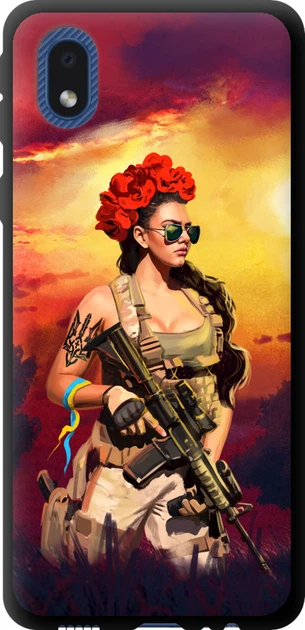 Чохол tpu чорний патріотичний на телефон Samsung Galaxy A01 Core A013F Українка зі зброєю "5316b-2065-58250"