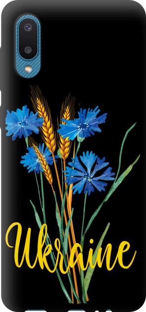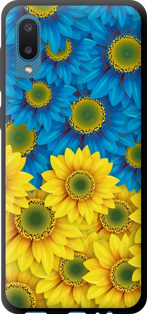 Чохол tpu чорний патріотичний на телефон Samsung Galaxy A02 A022G Жовто-блакитні квіти "1048b-2260-58250"