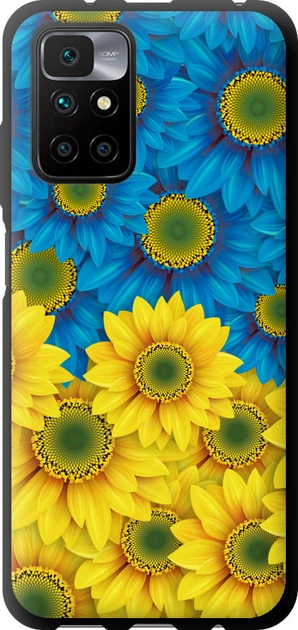 Чохол tpu чорний патріотичний на телефон Xiaomi Redmi 10 Жовто-блакитні квіти "1048b-2488-58250"