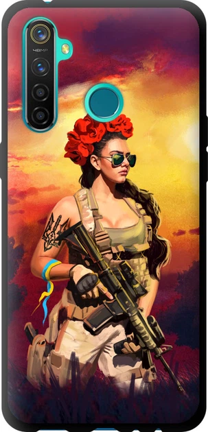 Чохол tpu чорний патріотичний на телефон Realme 5 Pro Українка зі зброєю "5316b-1861-58250"