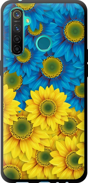 Чохол tpu чорний патріотичний на телефон Realme 5 Pro Жовто-блакитні квіти "1048b-1861-58250"