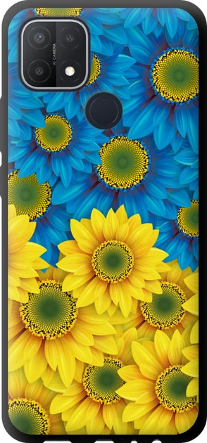 Чохол tpu чорний патріотичний на телефон Oppo A15 Жовто-блакитні квіти "1048b-2119-58250"
