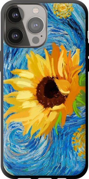 Чохол tpu чорний патріотичний на телефон iPhone 13 Pro Max Квіти жовто-блакитні "5308b-2371-58250"