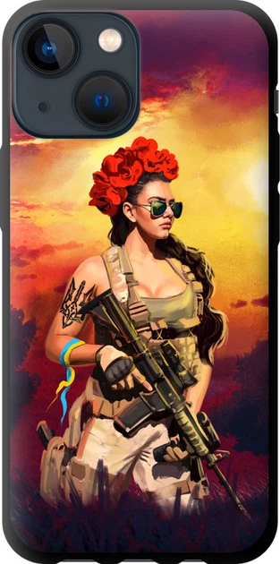 Чохол tpu чорний патріотичний на телефон iPhone 13 Mini Українка зі зброєю "5316b-2373-58250"