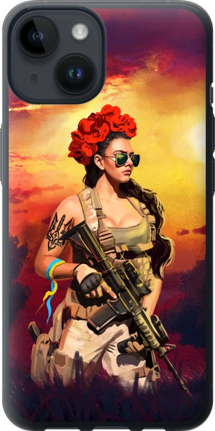 Чохол силіконовий патріотичний на телефон iPhone 14 Українка зі зброєю "5316u-2648-58250"