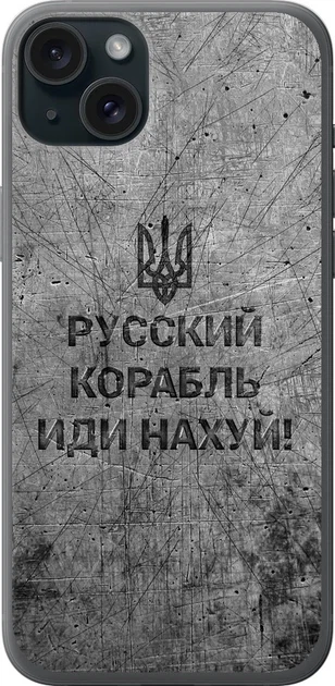Чохол силіконовий патріотичний на телефон iPhone 15 Plus Російський військовий корабель іди на v4 "5223u-3097-58250"