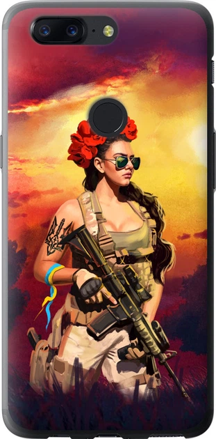 Чохол силіконовий патріотичний на телефон OnePlus 5T Українка зі зброєю "5316u-1352-58250"