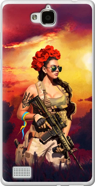Чохол силіконовий патріотичний на телефон Huawei Honor 3C Українка зі зброєю "5316u-307-58250"