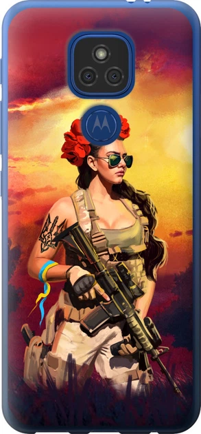 Чохол силіконовий патріотичний на телефон Motorola E7 Plus Українка зі зброєю "5316u-2107-58250"