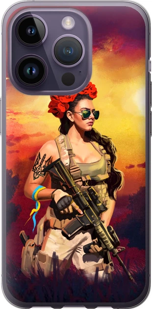 Чохол силіконовий патріотичний на телефон iPhone 14 Pro Українка зі зброєю "5316u-2646-58250"