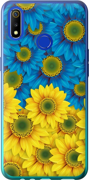 Чохол силіконовий патріотичний на телефон Realme 3 Жовто-блакитні квіти "1048u-1869-58250"