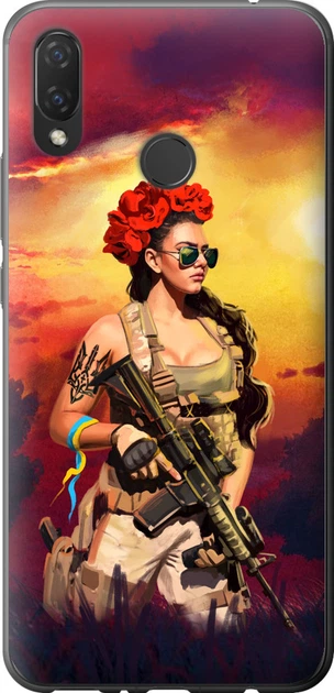 Чохол силіконовий патріотичний на телефон Huawei P Smart Plus Українка зі зброєю "5316u-1555-58250"