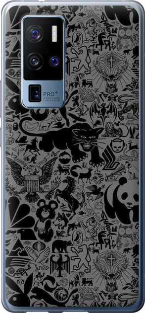 Чохол силіконовий на телефон Vivo X50 Pro Plus Чорно-сірий стікер бомбінг "2432u-2056-58250"