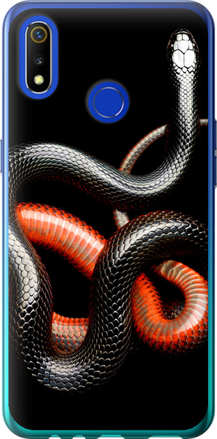 Чохол силіконовий на телефон Realme 3 Червоно-чорна змія на чорному фоні "4063u-1869-58250"