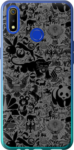 Чохол силіконовий на телефон Realme 3 Чорно-сірий стікер бомбінг "2432u-1869-58250"