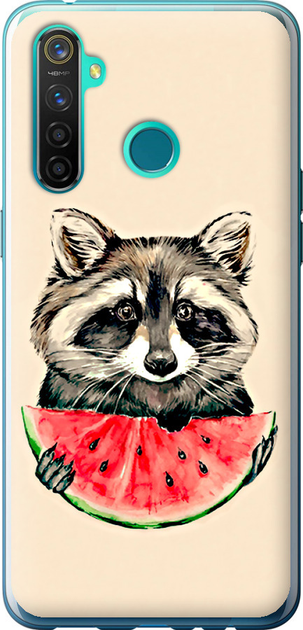Чохол силіконовий на телефон Realme 5 Pro Єнотик з кавуном "4605u-1861-58250"