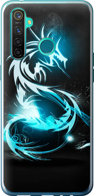 Чохол силіконовий на телефон Realme 5 Pro Біло-блакитний вогненний дракон "113u-1861-58250"