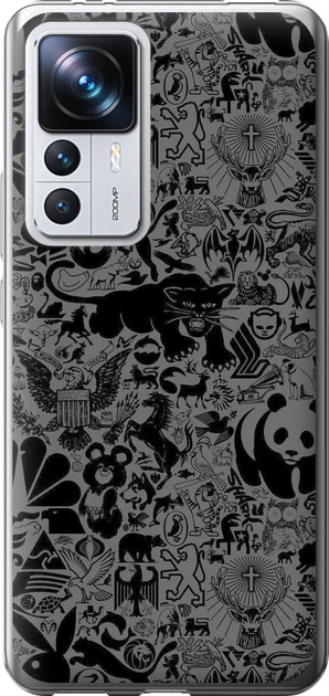 Чохол силіконовий на телефон Xiaomi 12T Чорно-сірий стікер бомбінг "2432u-3332-58250"