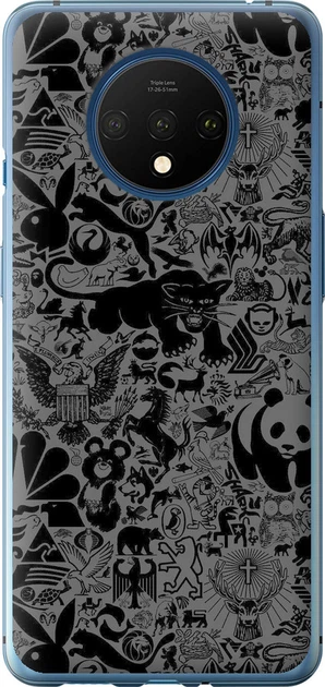 Чохол силіконовий на телефон OnePlus 7T Чорно-сірий стікер бомбінг "2432u-1809-58250"