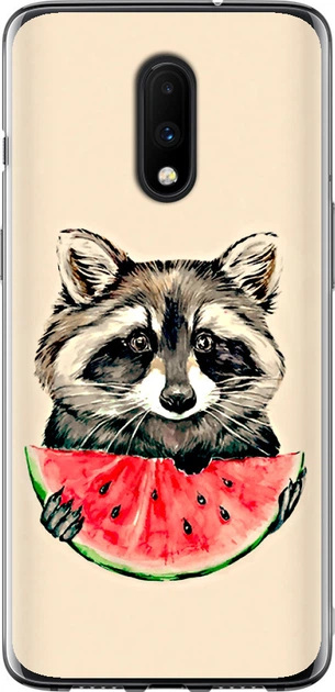 Чохол силіконовий на телефон OnePlus 7 Єнотик з кавуном "4605u-1740-58250"