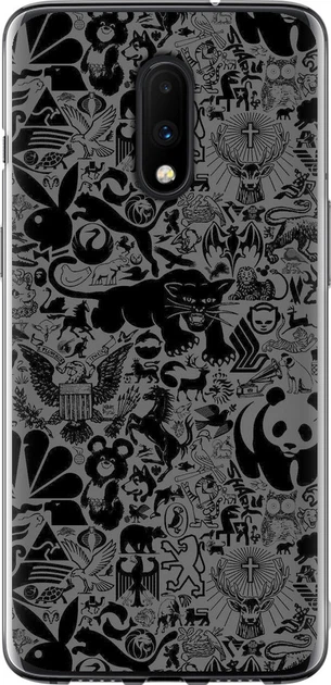 Чохол силіконовий на телефон OnePlus 7 Чорно-сірий стікер бомбінг "2432u-1740-58250"