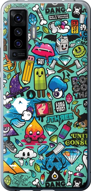 Чохол силіконовий на телефон Vivo X50 Стікер бомбінг 1 "693u-1955-58250"