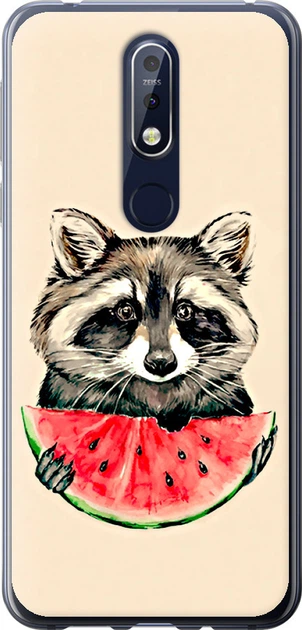 Чохол силіконовий на телефон Nokia 7.1 Єнотик з кавуном "4605u-1593-58250"