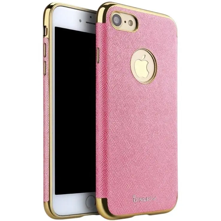 Чохол-накладка iPaky Chrome connector + Leather Back case iPhone 7 Plus Pink/Gold